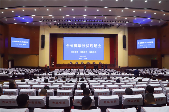 11月9日,全省健康扶貧現(xiàn)場會在鄲城縣召開。主要任務(wù)是深入學(xué)習(xí)貫徹習(xí)近平總書記關(guān)于扶貧工作的重要論述和黨的十九屆五中全會精神,落實好全省脫貧攻堅健康扶貧決策部署,動員全省上下全力以赴、凝心聚力,高質(zhì)量打贏健康扶貧收官戰(zhàn)。省衛(wèi)健委黨組成員、副主任王良啟,省扶貧辦黨組成員、副主任郭奎立,省醫(yī)保局黨組成員、副局長王峻峰,周口市人大常委會副主任、鄲城縣委書記羅文閣,副市長馬劍平等參加現(xiàn)場會。省紀委駐省衛(wèi)健委紀檢組長、委黨組成員李剛主持會議。