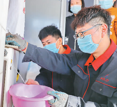 11月2日,河北省秦皇島市熱力公司河?xùn)|分公司工人正在社區(qū)維護(hù)供暖設(shè)施?! 〔芙ㄐ蹟z(人民視覺(jué)) |