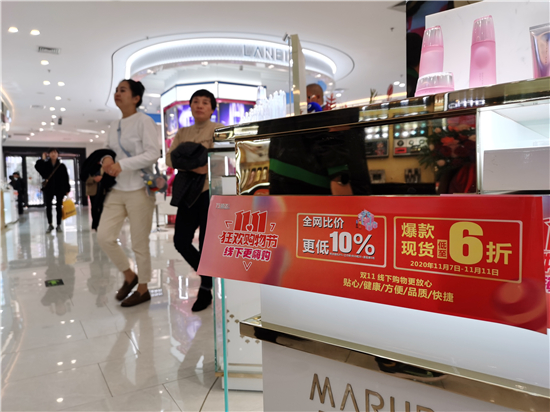 今天是“雙十一”,周口街頭不少商場、實體門店紛紛推出促銷優(yōu)惠活動。今年 雙“十一”電商打折,線下實體店也當仁不讓,使盡招數(shù)進行銷售。記者在中心城區(qū)看到,某大型商場策劃了“11.11狂歡購物節(jié)”活動,打出了“全網比價更低10%”的橫幅,還有的實體店更是明碼標價進行優(yōu)惠活動。②18