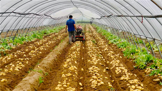 試點(diǎn)村宋崗、王村率先嘗試鋼架拱棚種植,春季在棚內(nèi)種植土豆,夏季養(yǎng)殖豆蟲(chóng),秋季種植糯玉米、水果玉米、小尖椒、有機(jī)花菜等,“三季連作”,立體化種植。當(dāng)年,這兩個(gè)村的群眾收成喜人,收入翻番。