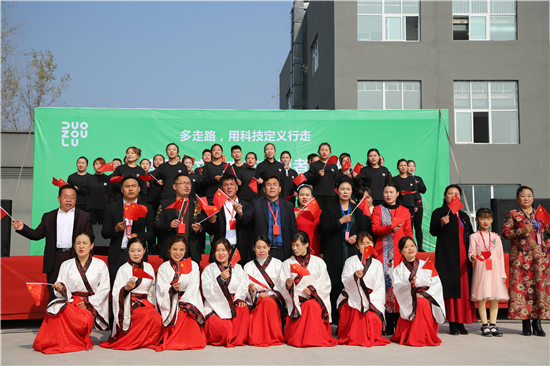 書院翰墨香,工廠生產(chǎn)忙??h書法家協(xié)會(huì)主席韓文甫引筆奮力現(xiàn)場(chǎng)揮毫,一副古樸典雅的隸書“多走路 用科技定義行走”如清風(fēng)出袖,明月入懷,贏得現(xiàn)場(chǎng)觀眾一片贊嘆。