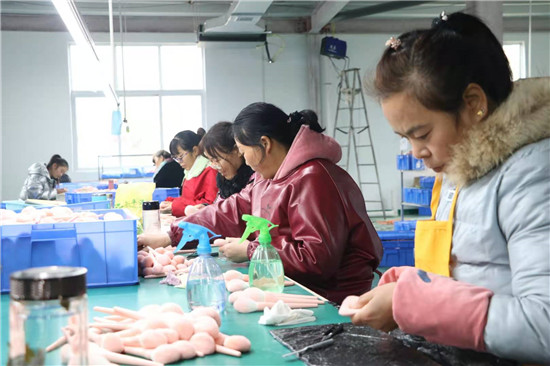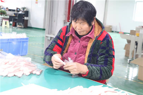 河南雅彩美妝用具有限公司負責(zé)人趙廣才介紹,公司主要從事化妝刷、美妝用具加工,十分適宜留守婦女干。車間里的工人基本都是貧困戶和住在附近的留守婦女。在家門口上班,既能掙錢,又方便照顧家人。每天中午公司還提供午餐,工人早上來上班,下午下班不耽誤回家照看孩子。“我上班已經(jīng)10多天了,再過不久,就可以領(lǐng)工資了,真是高興!”68歲的村民張美榮告訴記者,家里孩子們都大了,自己在家閑著也沒啥事,她就到包裝車間上班,一個月算下來能掙2000多元,活也不重,既鍛煉了身體,又提高了家庭收入。