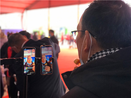 28日早上7時許,周口網(wǎng)紅俱樂部的網(wǎng)紅們和工作人員就開始為今天的直播做準備,早早把直播設備搬到現(xiàn)場,進行調試。10時左右,周商產品展示展覽活動現(xiàn)場人頭攢動,熱鬧非凡,來自周口本地的9位網(wǎng)紅們陸續(xù)架好手機直播設備,打開補光燈,開始直播?,F(xiàn)場的9位網(wǎng)紅各有特色,有打扮時髦的美女主播,有歌聲出眾的中年大叔,年齡最大的網(wǎng)紅是今年65歲的鹿邑大爺。網(wǎng)紅們一手拿著周口的蜂蜜、空心掛面、麻花、粉條、醬豆等土特產,一邊對著手機屏幕里的粉絲熱情地展示和介紹起來,有的還直接進行現(xiàn)場吃播,不時與網(wǎng)友進行唱歌、聊天互動,吸引了不少行人前來觀看?!霸瓉碓诙兑羯峡催^網(wǎng)紅帶貨,但沒見過真人, 今天終于見到真實的網(wǎng)紅了!感覺很有意思!”前來觀展的市民劉女士說。