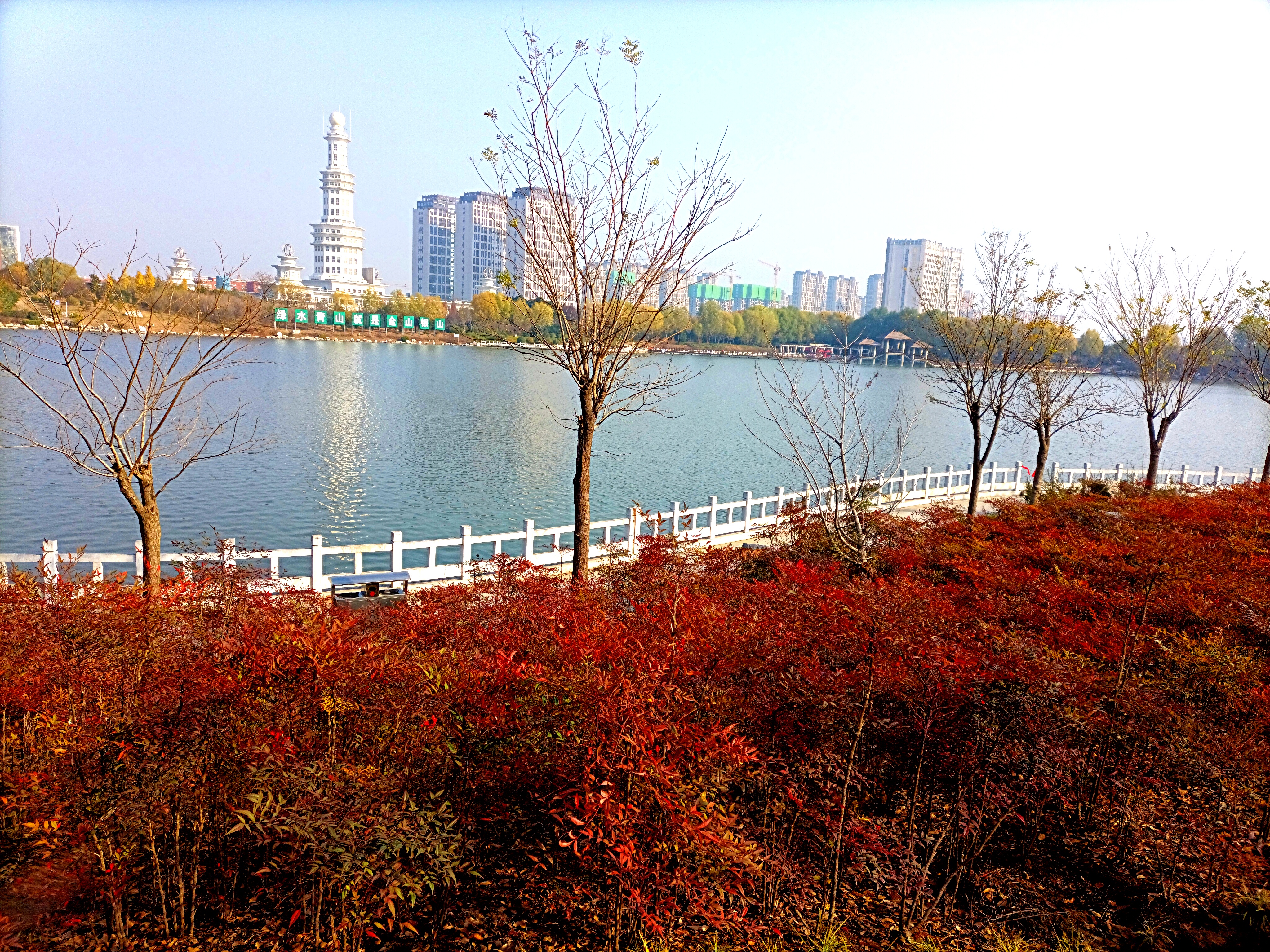 圖一:鮮艷的灌木叢和湖水相映成趣