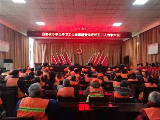 12月6日,白樓鎮(zhèn)召開冬季為環(huán)衛(wèi)工人送溫暖暨先進(jìn)環(huán)衛(wèi)工人表彰大會(huì),114名環(huán)衛(wèi)工人收到暖心的棉衣。