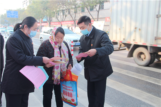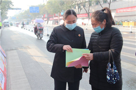 為深入學(xué)習(xí)宣傳習(xí)近平法治思想,引導(dǎo)廣大人民群眾牢固樹(shù)立憲法至上的理念,自覺(jué)維護(hù)憲法權(quán)威,讓?xiě)椃ň窀灿谌嗣袢罕娦闹校?2月4日,扶溝縣檢察院組織干警走上街頭,開(kāi)展以“深入學(xué)習(xí)宣傳習(xí)近平法治思想,大力弘揚(yáng)憲法精神”為主題的“國(guó)家憲法日”宣傳活動(dòng),向社會(huì)公眾普及憲法等法律知識(shí)。