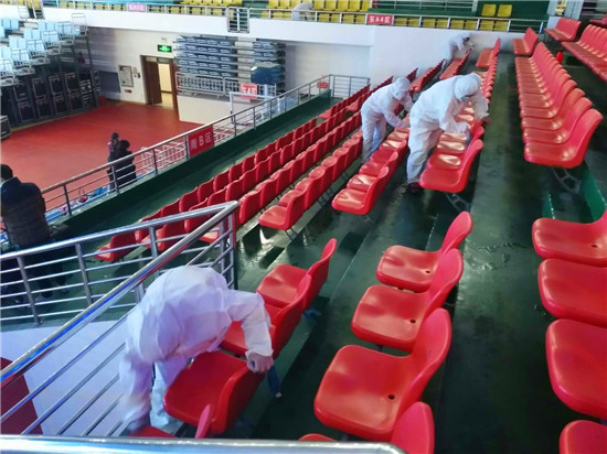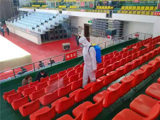為確保疫情防控工作,保障第一屆周商大會順利進行,11月26日至27日,30余名工作人員對市體育館內外、周商產品展示展覽區(qū)進行全面消毒殺菌,包括座椅,走廊,欄桿,門把手等,確保周商大會消殺工作不留死角。周口日報·周道客戶端見習記者 喬小納 攝