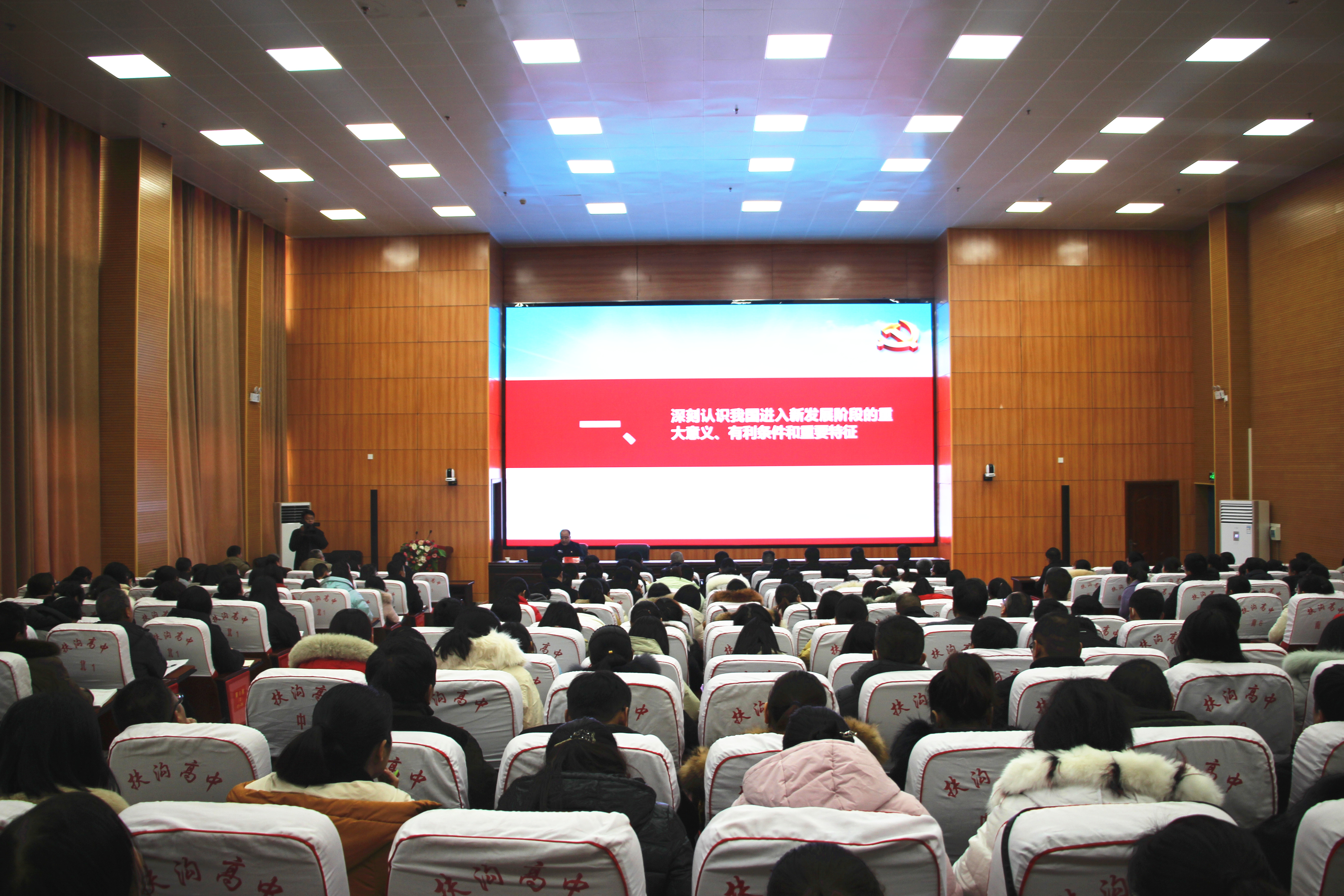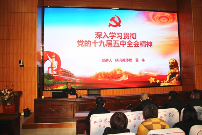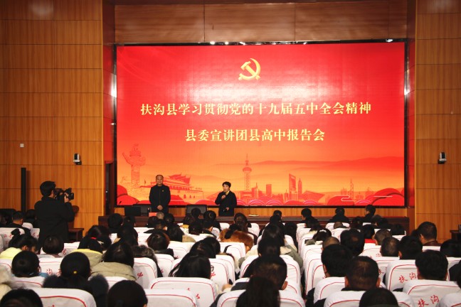 12月12日下午,扶溝縣高中德馨樓七樓會(huì)議室掌聲陣陣、座無(wú)虛席,扶溝縣學(xué)習(xí)貫徹黨的十九屆五中全會(huì)精神縣委宣講團(tuán)縣高中報(bào)告會(huì)正在這里舉行,宣講會(huì)特邀縣教體局黨組書(shū)記葛偉進(jìn)行宣講,局機(jī)關(guān)班子成員,縣高中班子成員和400余名教師參加了宣講會(huì)。