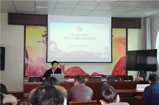 “黨的十九屆五中全會是在我國將進入新發(fā)展階段、實現(xiàn)中華民族偉大復興正處于關(guān)鍵時期召開的一次具有全局性、歷史性意義的會議?!?2月19日,扶溝縣審計局召開學習貫徹十九屆五中全會精神宣講大會,由局黨組書記翟連生作宣講報告,該局全體干部職工共40余人參加了宣講會。