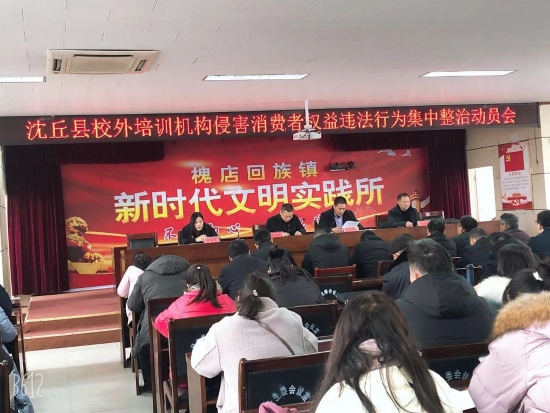 12月23日上午,沈丘縣校外培訓機構(gòu)侵害消費者權(quán)益違法行為集中整治動員會在槐店鎮(zhèn)召開。出席會議的有沈丘縣市場監(jiān)督管理局副局長李春華、教體局副局長李國峰、教體局安全辦主任劉志強等,各鄉(xiāng)鎮(zhèn)培訓機構(gòu)負責人參加會議,會議由槐店鎮(zhèn)鎮(zhèn)長李傳勝主持。