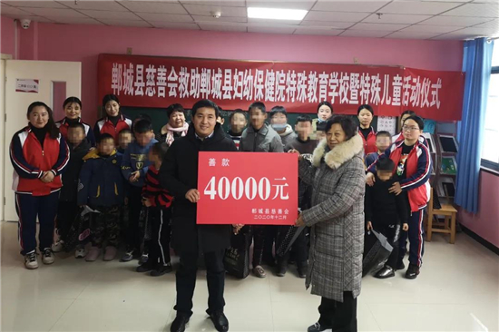 12月29日,鄲城縣慈善會會長趙愛梅、常務(wù)副會長趙如軒、副會長朱山峰、秘書長代文一行4人,到鄲城縣婦幼保健院特殊教育學(xué)校對特殊兒童進行慈善捐助。