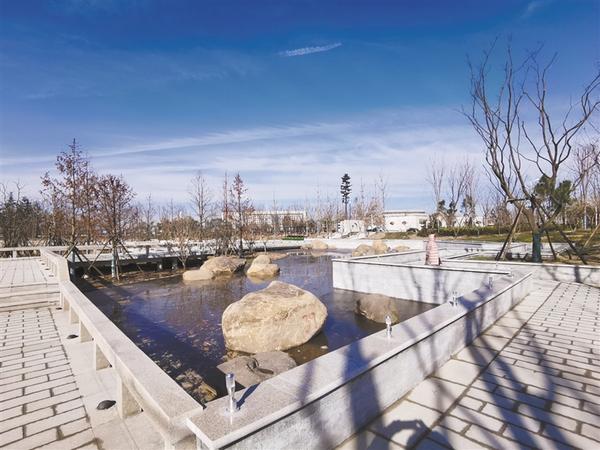 2020年12月31日,中心城區(qū)水系綜合治理書香文苑園區(qū)完工,向市民開放。書香文苑園區(qū)位于文昌大道與政通路交叉口西南角,是洼沖溝水系治理的一部分。園區(qū)內(nèi)突出周口毛筆之鄉(xiāng)文化元素、建設(shè)生態(tài)綠色林帶、布置觀景濱水平臺等內(nèi)容,建有兩處廣場、景觀旱噴、濱水平臺、文化地雕等設(shè)施,為市民增加一處活動休閑的地方。記者 孫安平 攝