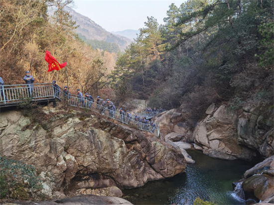 在革命烈士紀(jì)念碑前,學(xué)員們脫帽向革命烈士三鞠躬,為革命烈士敬獻(xiàn)了花籃,并舉起右拳重溫了入黨誓詞,表達(dá)對(duì)紅軍烈士的崇敬和緬懷之情。學(xué)員們還跟隨劉鄧大軍的腳印重走了“志仁小道”,重溫紅軍當(dāng)年走過(guò)的歷史足跡,體驗(yàn)了紅軍的艱苦歲月及頑強(qiáng)的革命精神和優(yōu)良的革命傳統(tǒng),真切領(lǐng)悟了大別山精神的深刻內(nèi)涵,進(jìn)一步堅(jiān)定了理想信念,強(qiáng)化了黨性意識(shí),提升了強(qiáng)黨建促發(fā)展的責(zé)任感和使命感。