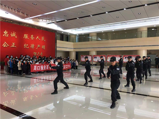 1月10日是首個“中國人民警察節(jié)”和“110”誕生35周年。小記者應邀提前走進市公安局參觀體驗。9日上午,在二樓大廳,特警隊員進行了擒敵拳表演,現(xiàn)場掌聲經(jīng)久不息。
