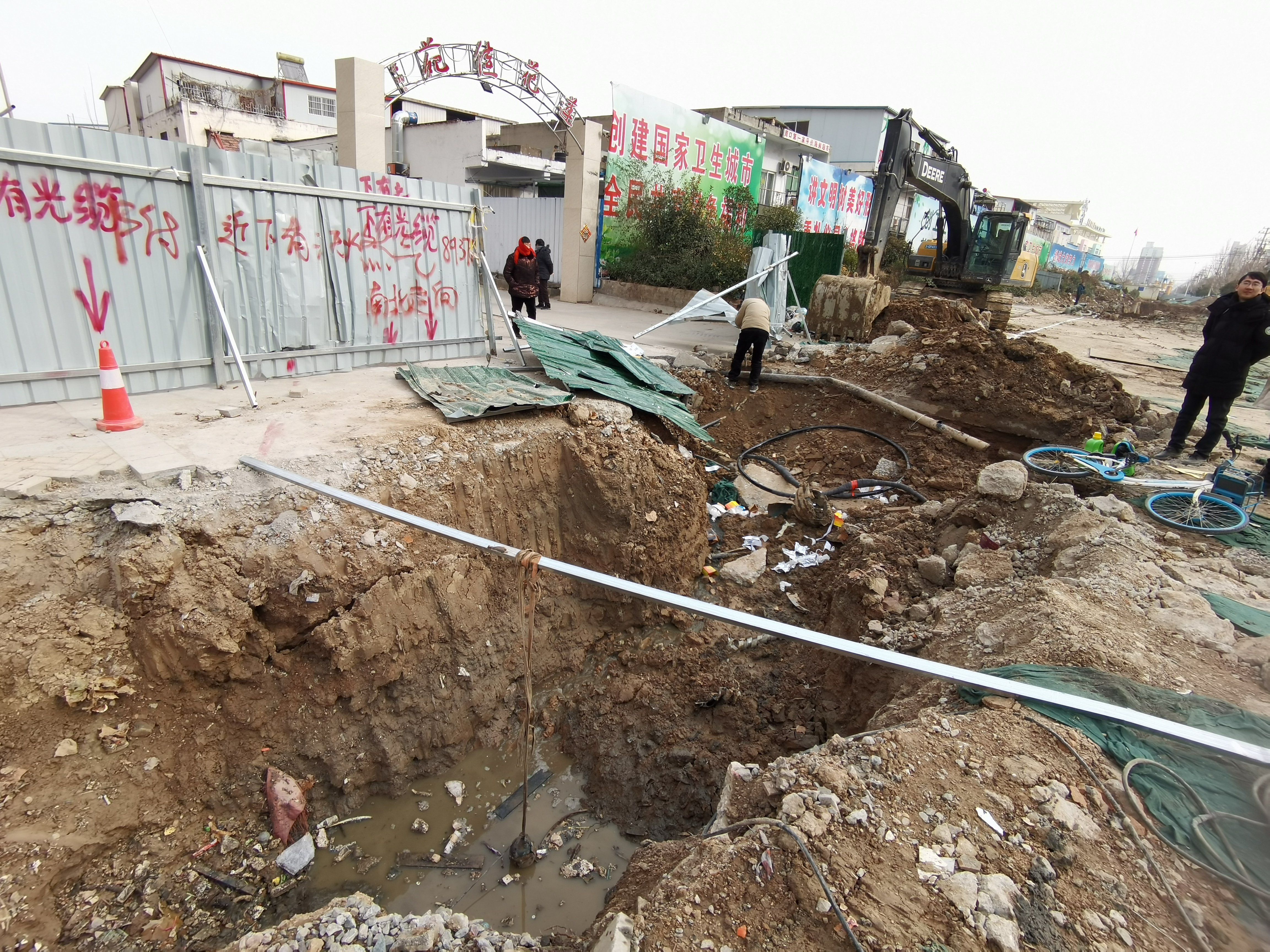 當日上午,在蓮花路中段蓮花佳苑小區(qū)門前的地下電纜外破現(xiàn)場,一輛挖掘機停在 外破點的旁邊,挖斷的電纜經過搶修后裸露在一旁?,F(xiàn)場施工人員介紹,此處正在進行箱涵施工,預計春節(jié)前能夠完工。