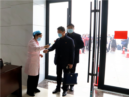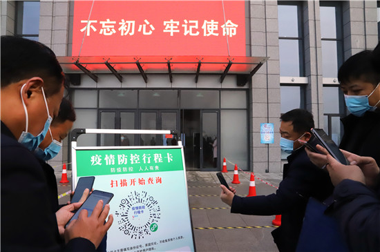 在會場之外,該縣疫情防控指揮部設立多重保障守護大會安全。在疫情防控常態(tài)化所有人員必須戴口罩的情況下,首先通過第一重保障,即通過手機掃描“通信大數(shù)據(jù)行程卡”,呈“綠碼”方可走向會場大門;進入會場大門時,排隊進行體溫監(jiān)測,體溫顯示正常方可進入。與此同時,會場座位按照隔位入座的形式,保障人與人之間的距離超過50厘米。在多重保障的守護下,確保大會順利安全舉行。③5