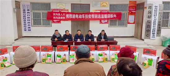 1月25日,扶溝縣人大常委會(huì)機(jī)關(guān)聯(lián)合愛心企業(yè),到扶溝縣包屯鎮(zhèn)譚崗行政村舉行愛心扶貧捐贈(zèng)活動(dòng)。