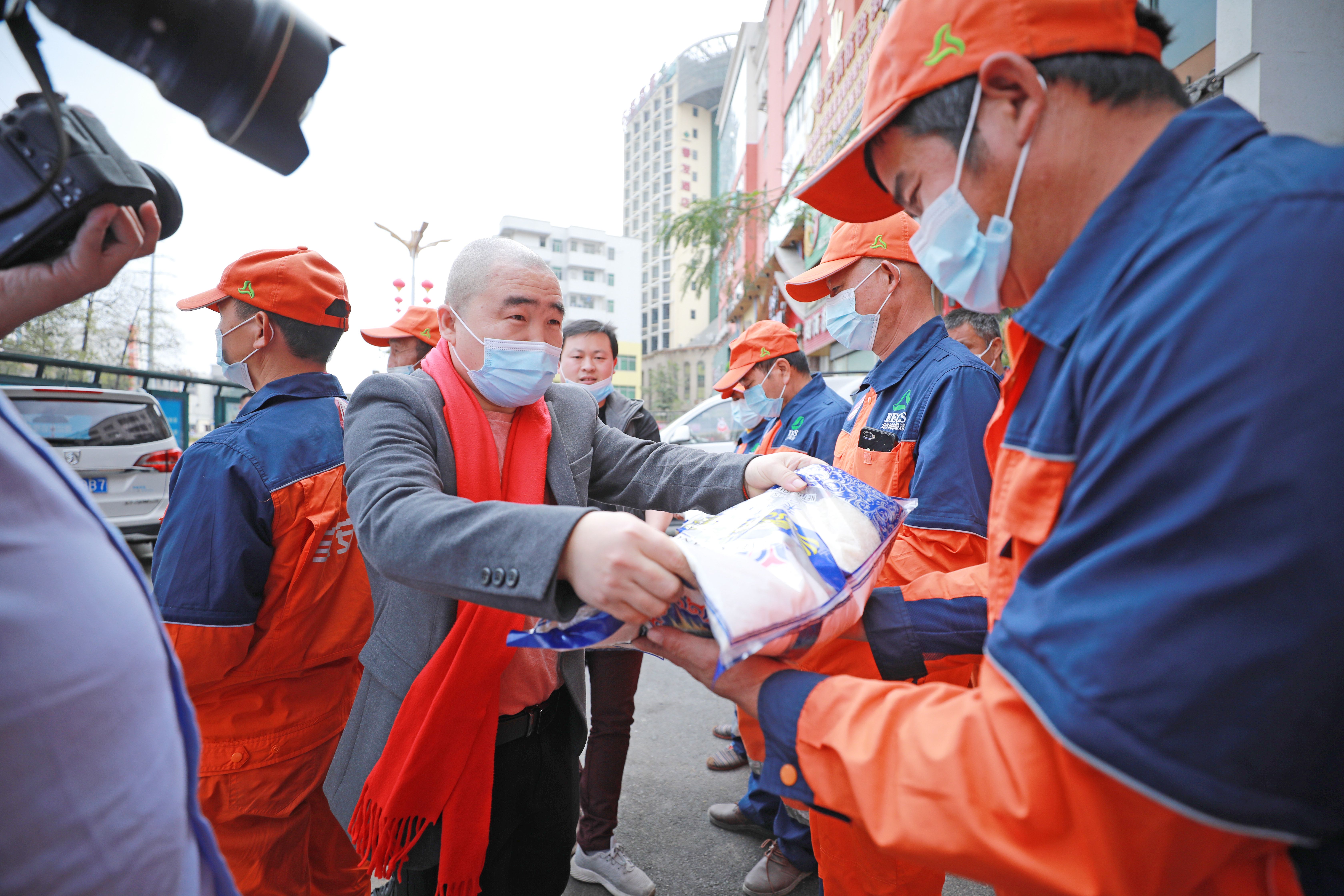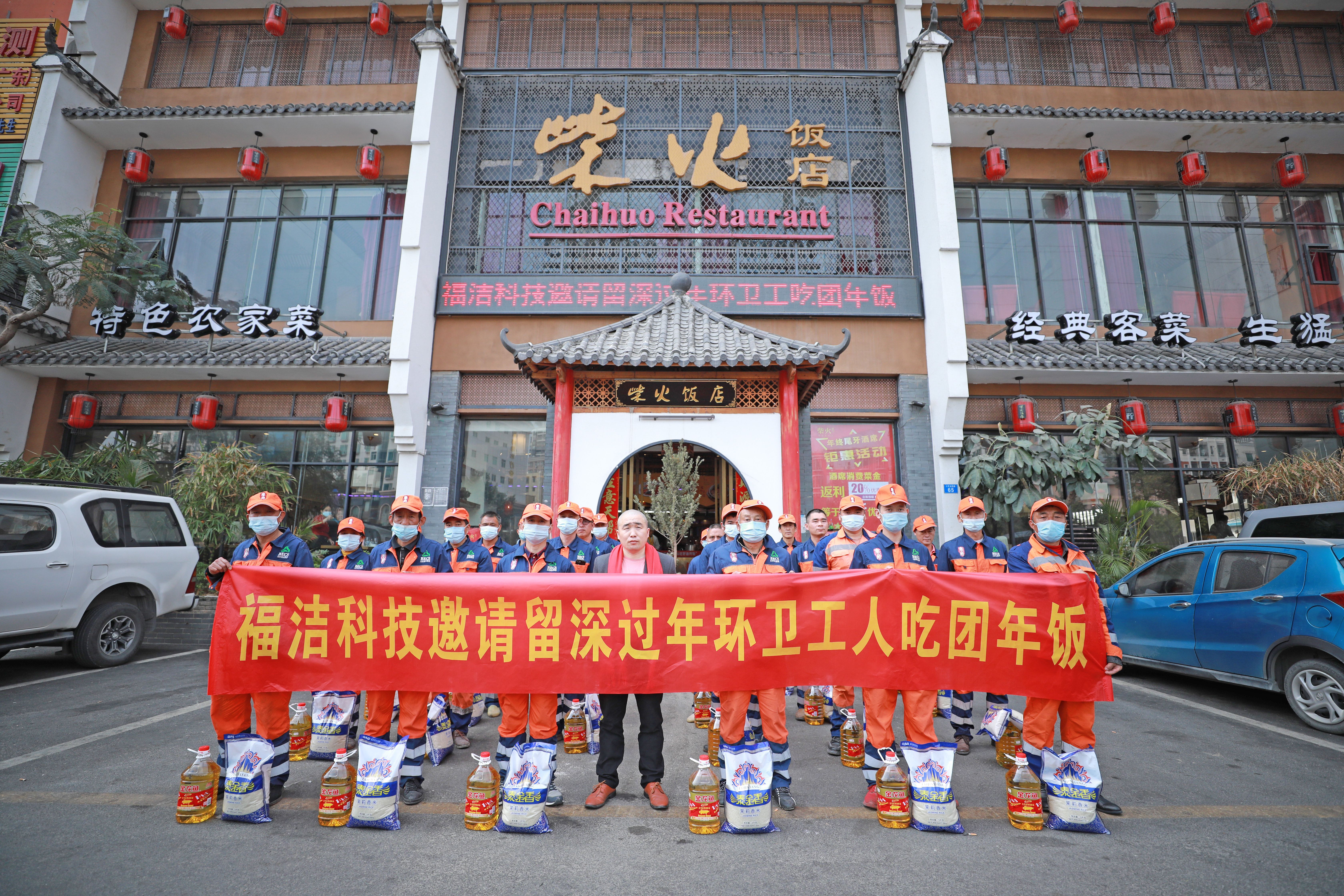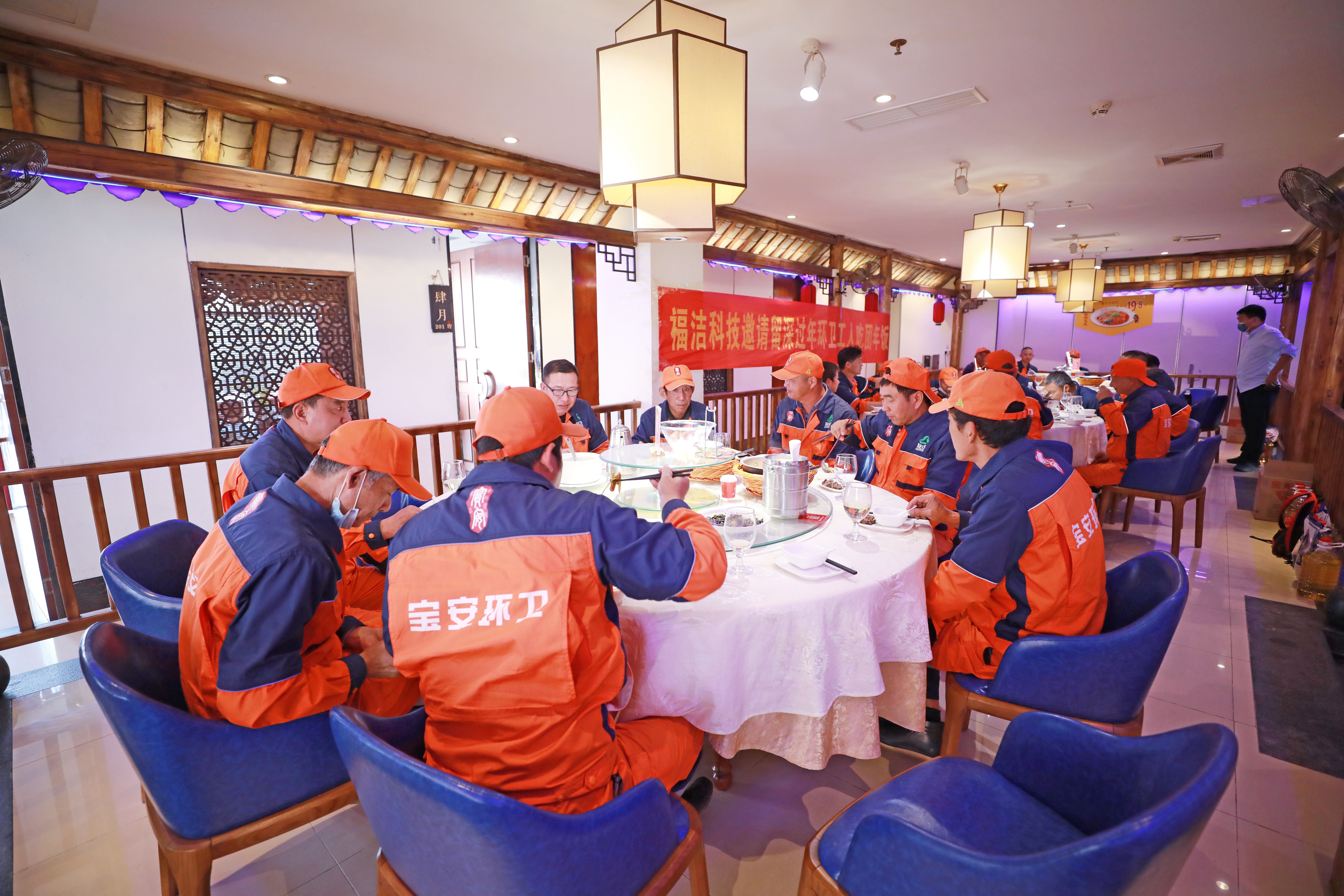 “今年過(guò)年我們都留在深圳了,張老板很有愛(ài)心,經(jīng)常關(guān)照我們環(huán)衛(wèi)工,很感謝他!”1月27日中午,在深圳寶安區(qū)新橋街道北環(huán)路柴火飯店,近30名(大部分為河南籍)留深過(guò)年的環(huán)衛(wèi)工在一起吃團(tuán)年飯,菜肴飄香,其樂(lè)融融。做東的是深圳市福潔科技公司的老板張高鵬。當(dāng)日中午,環(huán)衛(wèi)工們剛結(jié)束上午的工作,身穿工作服走進(jìn)深圳寶安區(qū)新橋街道柴火飯店。愛(ài)心老板張高鵬在門(mén)口迎接,并為大家送上大米、金龍魚(yú)油和新年祝福。白切雞、龍骨靚湯、小炒肉、紅燒肉、紅燒鯉魚(yú)、梅菜扣肉……餐桌上擺滿了各式菜肴,供環(huán)衛(wèi)工人們享用。大家一邊品嘗美味,一邊拉起家常。