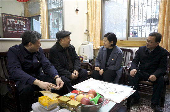 羅文閣一行先后深入老領(lǐng)導(dǎo)、老干部代表趙威、王子明、趙愛梅家中,與他們親切座談,詳細(xì)詢問老領(lǐng)導(dǎo)、老干部生活情況和健康狀況,認(rèn)真征詢他們對(duì)縣委、縣政府工作的意見和建議,并代表縣四個(gè)班子和全縣人民向老領(lǐng)導(dǎo)、老干部、老同志致以新春的美好祝福,向他們?yōu)猷惓前l(fā)展作出的積極貢獻(xiàn)表示衷心感謝,并祝愿老領(lǐng)導(dǎo)、老干部、老同志身體健康、家庭幸福。