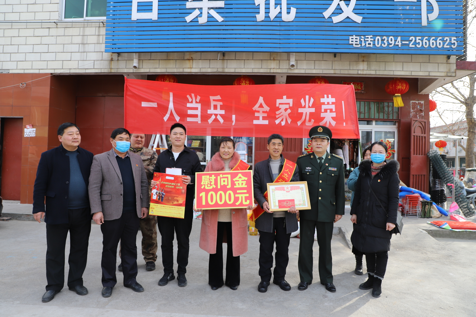 “一人當(dāng)兵,全家光榮”。為貫徹落實(shí)習(xí)近平總書記“讓軍人成為全社會(huì)尊崇的職業(yè)”指示精神,同時(shí)也為了在全區(qū)范圍內(nèi)營(yíng)造崇軍、擁軍、愛(ài)軍的社會(huì)氛圍,激勵(lì)廣大適齡青年參軍報(bào)國(guó),為國(guó)防建設(shè)作貢獻(xiàn)的熱情。在春節(jié)來(lái)臨之際,黃泛區(qū)人民武裝部政委張勇協(xié)調(diào)經(jīng)開區(qū)黃泛區(qū)社會(huì)事務(wù)服務(wù)中心黨工委、退役軍人事務(wù)局等地方工作人員集中開展“送一份喜報(bào),做一次動(dòng)員”活動(dòng)。