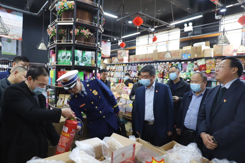 為落實(shí)河南省煙花爆竹禁售禁放工作電視電話會(huì)議和全市煙花爆竹禁售禁放暨春節(jié)期間污染防治工作會(huì)議精神,做好春節(jié)期間火災(zāi)預(yù)防、煙花爆竹禁售禁放工作,確保節(jié)日期間物資供應(yīng)充足、市場秩序持續(xù)穩(wěn)定,2月9日,周口港區(qū)黨委書記孫鵬前往轄區(qū)居民社區(qū)、市場督導(dǎo)春節(jié)期間各項(xiàng)保障工作落實(shí)情況。港區(qū)黨委委員杜廣賢、公安分局局長康群泉陪同。