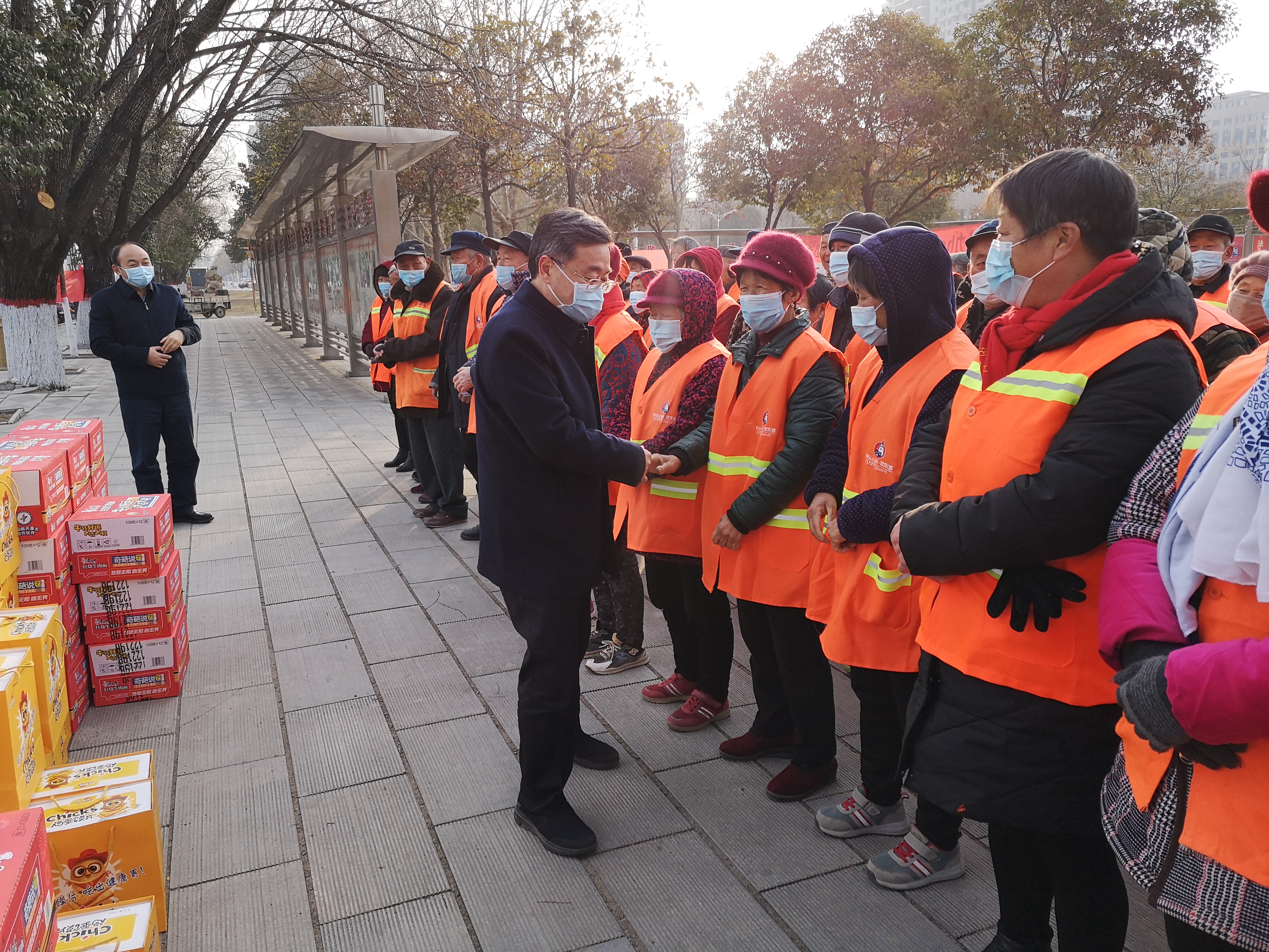 在行政新區(qū)全民健身廣場,皇甫立新、劉國慶同環(huán)衛(wèi)工人們一一握手,并代表縣四個(gè)班子向堅(jiān)守一線的環(huán)衛(wèi)工人致以新春的祝福,對他們在過去一年里付出的辛勤勞動(dòng)表示衷心感謝?;矢α⑿抡f,一年來,環(huán)衛(wèi)工人們起早貪黑、兢兢業(yè)業(yè),為改善居民生活環(huán)境和提升城市形象付出很多心血和汗水,取得了良好效果,城區(qū)環(huán)境和城市面貌有了很大改善,得到了社會(huì)各界的一致好評,希望大家繼續(xù)發(fā)揚(yáng)愛崗敬業(yè)、無私奉獻(xiàn)的精神,把縣城衛(wèi)生打掃的更加干凈、整潔,為全縣人民歡度春節(jié)創(chuàng)造一個(gè)干凈舒適愉快的環(huán)境。