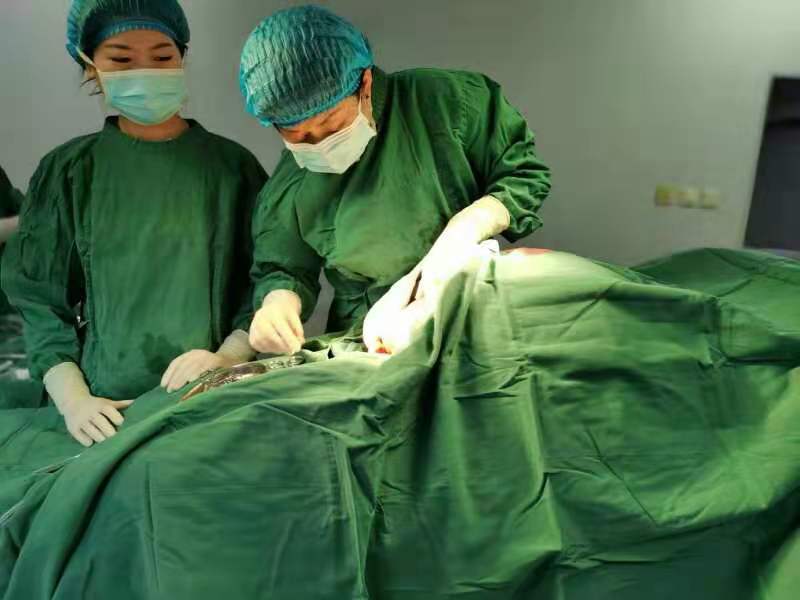另一方面,病人家屬因缺乏相關(guān)醫(yī)學(xué)常識(shí),似乎意識(shí)不到事情的嚴(yán)重性。楊秀麗更是心急如焚,但仍耐心溝通,確保最短的時(shí)間,最佳的速度,做好術(shù)前一切準(zhǔn)備。同時(shí),楊秀麗又電話(huà)通知新生兒科值班醫(yī)生做好搶救新生兒的準(zhǔn)備。難度太大,病人體重過(guò)重,加之病情復(fù)雜,情況緊急,手術(shù)室主任時(shí)慶祥親自上臺(tái)進(jìn)行麻醉,產(chǎn)二科楊秀麗親自主刀手術(shù)。