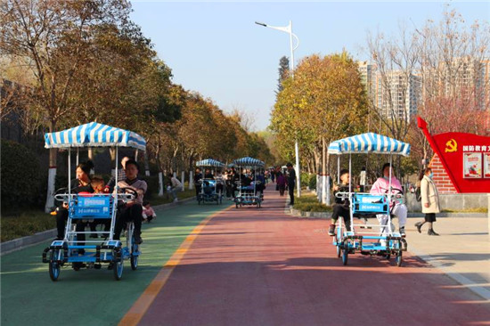 “今天真暖和?!?月19日,風(fēng)和日麗,周口國(guó)防教育園內(nèi)湖水蕩漾,四周的迎春花、梅花相繼開放,吸引了許多市民帶著孩子前往踏春賞花,接受國(guó)防教育。周口日?qǐng)?bào)·周道客戶端記者 高洪馳 攝