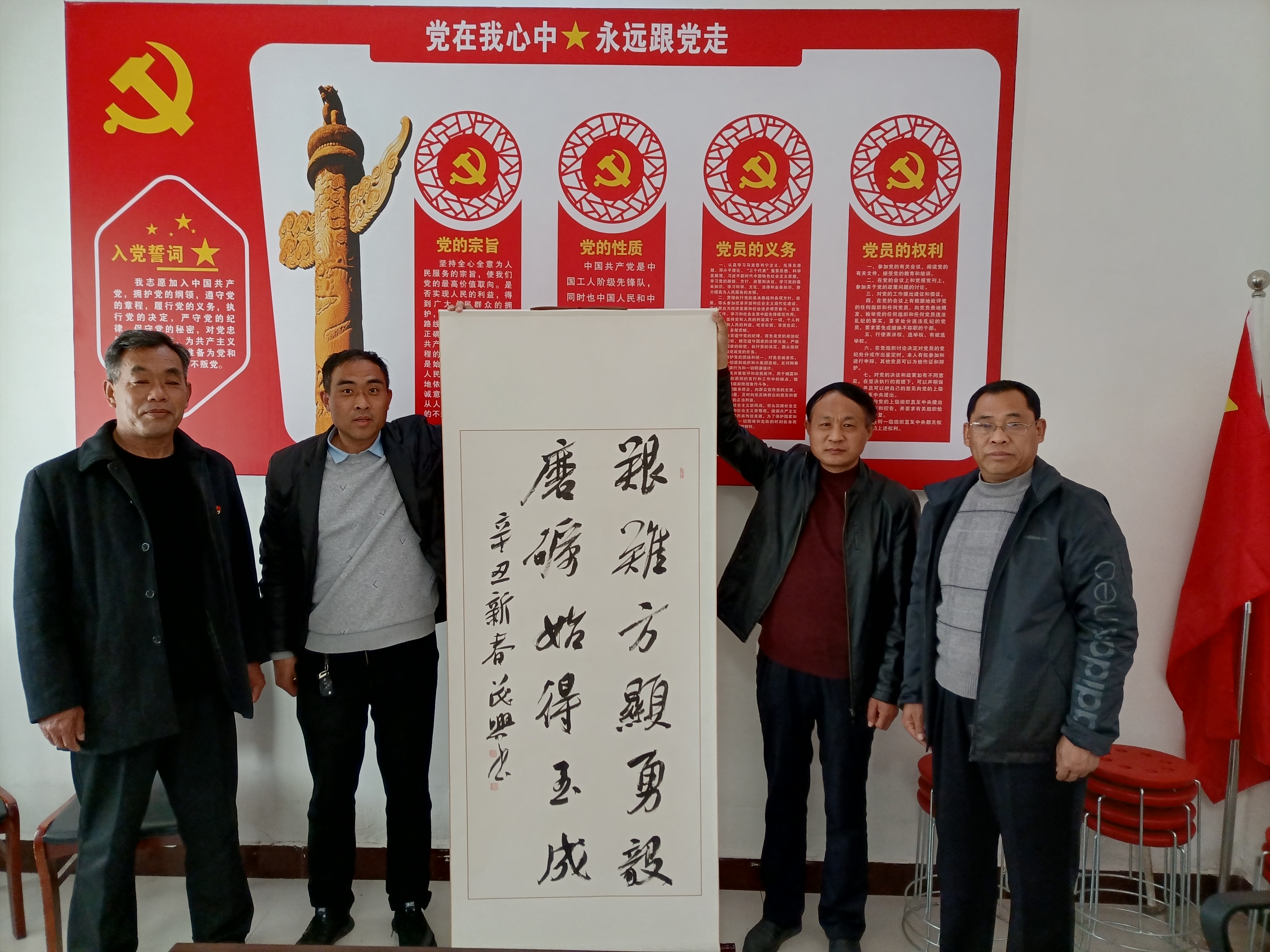 參與活動(dòng)的書法家們都來自于太康縣中書協(xié)和省書協(xié)會(huì)員,書寫內(nèi)容全部來自于習(xí)近平總書記的經(jīng)典講話,裝裱之后送到全縣榮獲省、市、縣先進(jìn)黨支部的行政村,內(nèi)容突出新時(shí)代的“新”,涉及“永遠(yuǎn)跟黨走”,成為宣傳黨建知識(shí)的新載體、教育群眾干部的新陣地。