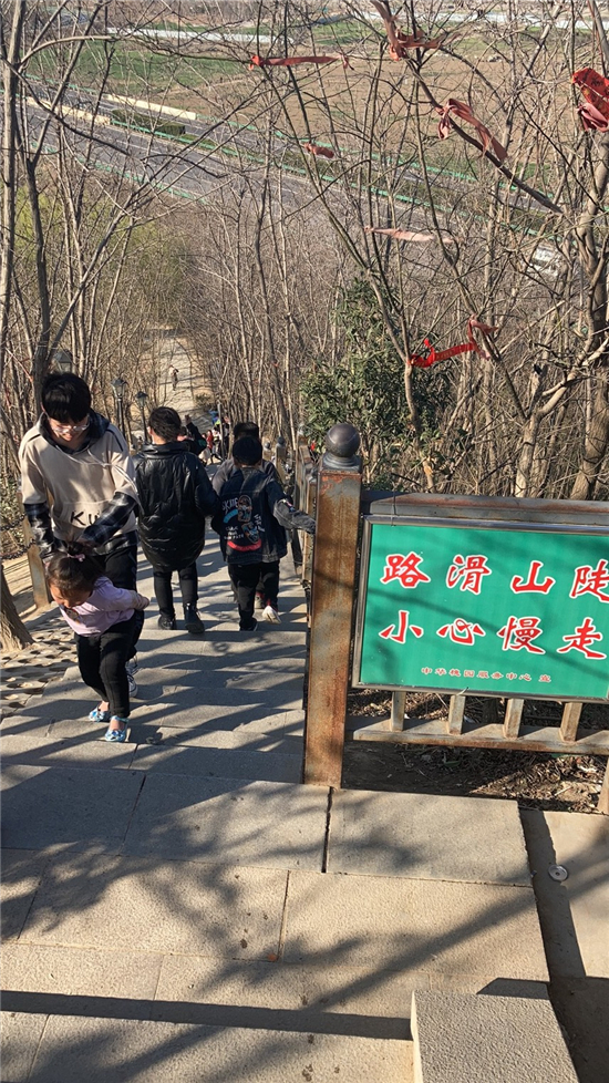 在槐香湖邊,年輕人三五結(jié)伴登上游艇,“坐船能到湖那邊的小島,島上也有槐樹,拍照肯定特別漂亮。”返鄉(xiāng)大學(xué)生把七星島上的景色留在了自己的相機(jī)里。七星島與槐香湖相連的橋上,人潮擁擠,有的人席地而坐,觀賞著橋上的風(fēng)景。當(dāng)問道在外市工作的王先生游玩感受時,他回答到:“年后上班沒時間鍛煉身體,今天我把全家人帶來登山,呼吸一下新鮮空氣?!雹?