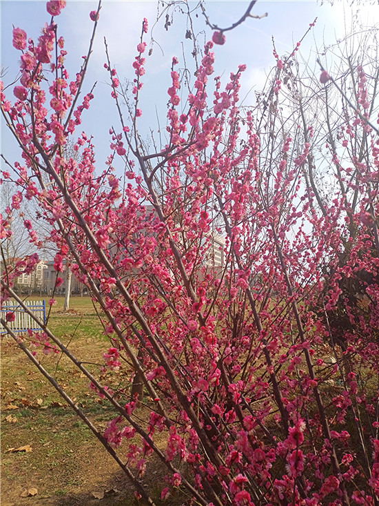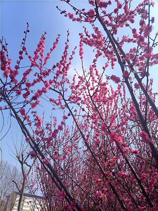 梅花,自古以來(lái)就是文人墨客筆下的???。有詩(shī)云:“春風(fēng)試手先梅蕊,頩姿冷艷明沙水?!泵坊軌蛄韬㈤_(kāi),兼具冷艷和嬌媚,被譽(yù)為花中四君子之首。近日,我市天氣晴好,公園內(nèi)、道路旁,一樹(shù)樹(shù)梅花開(kāi)的熱熱鬧鬧、密密匝匝,令人感受到濃濃的春意和無(wú)盡的美好。