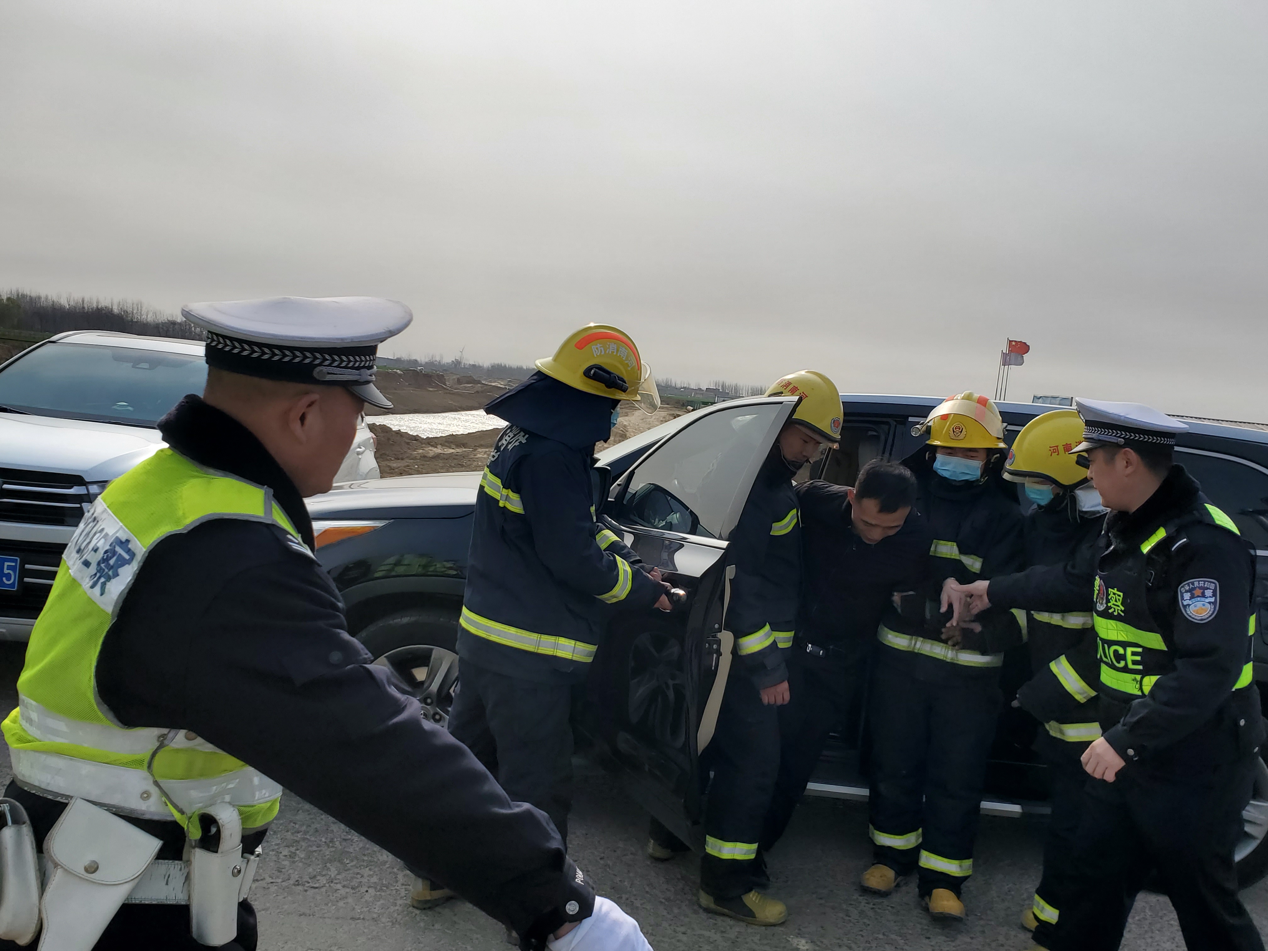 演練模擬2月23日10許,在G220國道河南安徽二省交界友誼橋處,二輛越野車在道路中心線處相撞,二輛車駕駛?cè)祟^部受傷流血,車門被卡,車輛起火冒煙道路嚴(yán)重?fù)矶隆⑶闆r危急。接到報(bào)警后,交警部門立即向上級(jí)進(jìn)行匯報(bào),“四位一體”聯(lián)動(dòng)工作機(jī)制隨即啟動(dòng),相關(guān)部門迅速趕往現(xiàn)場開展事故處置和救援工作。同時(shí)會(huì)同交警、屬地派出所,消防救援、醫(yī)療救護(hù)部門一起協(xié)助開展相關(guān)工作。隨后事故民警按照現(xiàn)場勘查要求,迅速對(duì)現(xiàn)場進(jìn)行勘查、拍照,提取相關(guān)證據(jù),配合搶險(xiǎn)、醫(yī)療施救各部門,并對(duì)現(xiàn)場遺留物品進(jìn)行清理、登記并妥善保管??辈榻Y(jié)束后交警部門解除警戒區(qū),將車輛疏導(dǎo)、分流完畢后撤離現(xiàn)場。