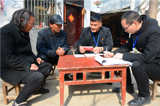 “春節(jié)前夕,有人給您送慰問品嗎?”“有啊,村干部送過了一桶食用油?!薄澳鷤兎蚱迋z個(gè)養(yǎng)老金沒問題吧?”“正常領(lǐng)取,沒有問題?!薄坝心膫€(gè)部門向您收過錢嗎?”“這不屬于非法占地,沒有人來要錢。”“年前您參加了村委換屆選舉嗎?對(duì)干部滿意不?”“參加了,俺對(duì)新任干部沒有意見”......不知不覺臨近中午,邵國(guó)闖等微笑告辭。