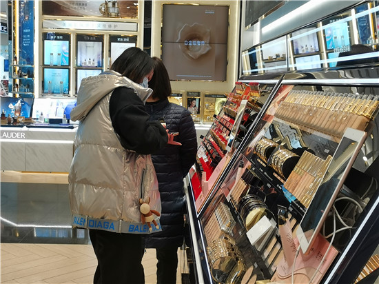 “精致的生活需要儀式感,把自己打扮得漂漂亮亮的,是對(duì)自己的關(guān)愛?!痹谝簧虉?chǎng)的化妝品專柜前,一對(duì)正在選購化妝品的母女說。