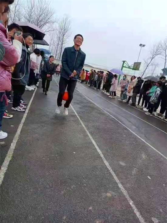 隨著裁判員一聲令下,比賽開始,參賽老師們快如風(fēng)、急如電,奮力沖向前方,把球接力給下一位隊(duì)員。接球的隊(duì)員等待已久,接過(guò)球立馬向前飛奔。整個(gè)操場(chǎng)上,加油聲、喝彩聲此起彼伏,熱鬧非凡。學(xué)生們擠滿了賽場(chǎng),用熱烈的掌聲和歡呼聲為老師們加油,期盼著自己的老師有精彩的表現(xiàn)?! ?/p>