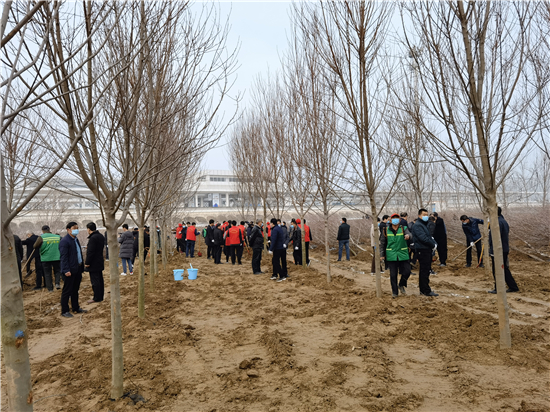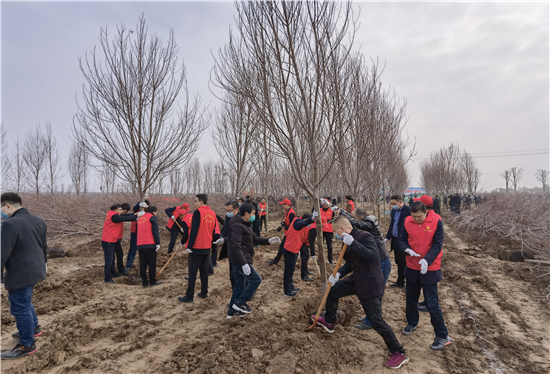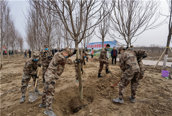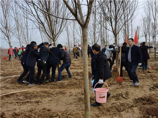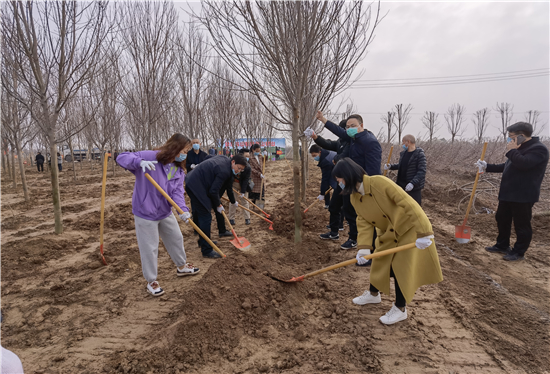 3月12日是全國第43個(gè)植樹節(jié),我市社會各界群眾來到高鐵片區(qū)義務(wù)植樹基地開展義務(wù)植樹活動(dòng),為森林周口建設(shè)增綠添彩。栽下棵棵樹苗,留下一片新綠,大家一起扶苗、培土、圍堰、澆灌,現(xiàn)場呈現(xiàn)一派熱火朝天的繁忙景象。②7
