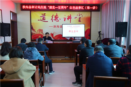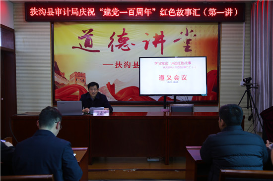 “遵義會(huì)議結(jié)束了王明左傾機(jī)會(huì)主義路線在黨中央的統(tǒng)治(4年),確立了以毛澤東為代表的新的中央正確領(lǐng)導(dǎo)。在中國(guó)革命的危急關(guān)頭,挽救了黨,挽救了紅軍,挽救了中國(guó)革命,是我黨歷史上一個(gè)生死攸關(guān)的轉(zhuǎn)折點(diǎn)?!?月15日,扶溝縣審計(jì)局黨史學(xué)習(xí)教育“紅色故事匯”開講了,局長(zhǎng)翟連生主講,局機(jī)關(guān)全體黨員干部參加了學(xué)習(xí)。