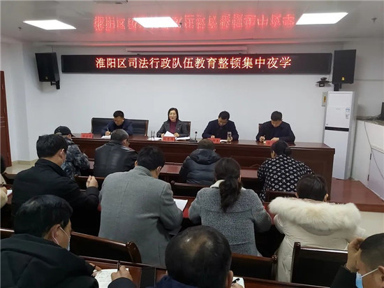 近日,淮陽區(qū)司法局開展司法行政隊(duì)伍教育整頓集中夜學(xué)。區(qū)司法局領(lǐng)導(dǎo)班子全體成員,局機(jī)關(guān)以及18個(gè)司法所全體人員參加集中夜學(xué),局黨組書記、局長段志偉主持學(xué)習(xí)會(huì)。
