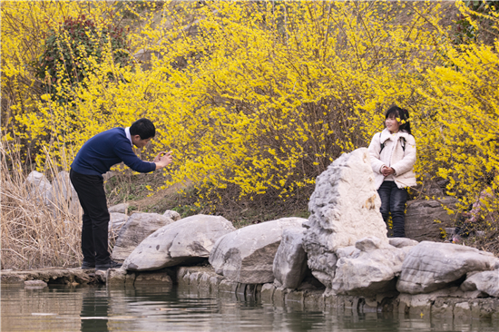乍寒乍暖的二月天,讓迎春的花兒趕趟兒似的陸續(xù)綻開(kāi),桃紅柳綠春意濃,市民們走出家門,帶著孩子踏青賞花。文昌大道上的周口公園內(nèi)垂柳綠意濃,桃花、櫻花、玉蘭花次第綻放,成為市民們春天里賞花的好去處。