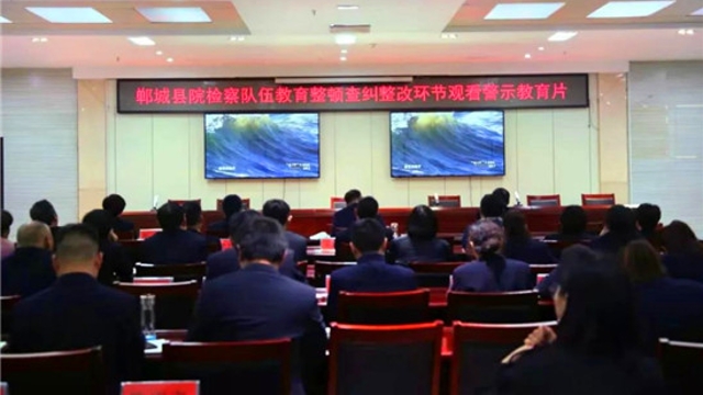 為深入推進政法隊伍教育整頓工作,5月19日下午,淮陽區(qū)人民檢察院召開教育整頓查糾整改環(huán)節(jié)警示教育大會,組織檢察干警觀看《賈小剛案警示錄》。