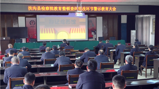 4月14日下午,扶溝縣檢察院組織全體干警集中觀看了《記憶中的燴面》《法不容私》《“保護傘”自身難保,“坐地虎”坐進監(jiān)牢》三部警示教育片