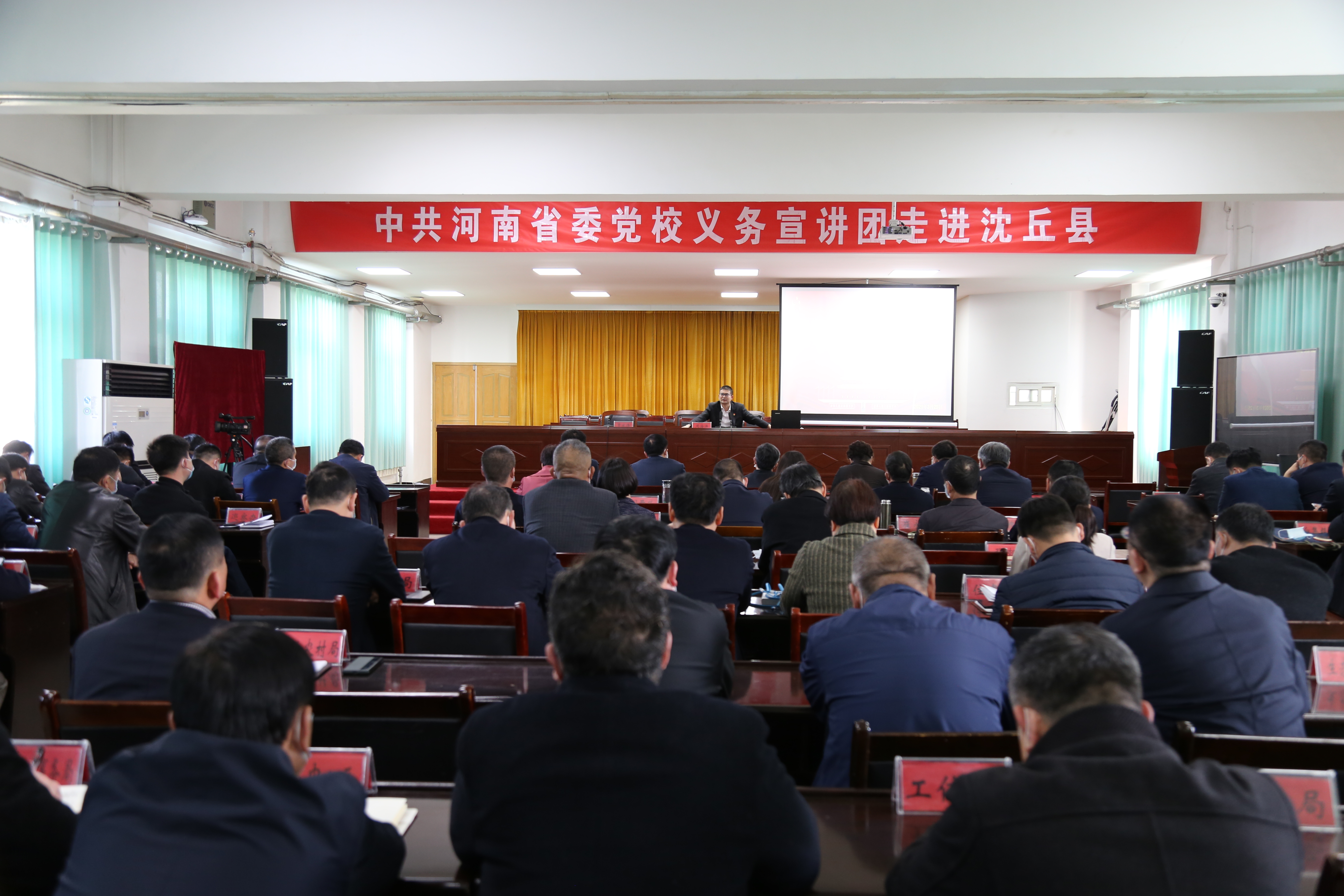 3月25日下午,中共河南省委黨校義務(wù)宣講團(tuán)走進(jìn)沈丘縣開(kāi)展宣講活動(dòng)。皇甫立新、賈慶偉、殷曉春、趙振、郝四春、劉和輝、呂孝坤等在家的縣四個(gè)班子領(lǐng)導(dǎo)及副處級(jí)以上干部與全縣近200余名黨員干部共同聆聽(tīng)了宣講報(bào)告。縣委副書(shū)記賈慶偉主持報(bào)告會(huì)。