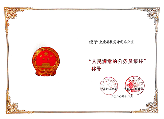 近日,省委、省政府對第四屆全省“人民滿意的公務(wù)員”和“人民滿意的公務(wù)員集體”進行表彰,太康縣扶貧開發(fā)辦公室榮獲第四屆“人民滿意的公務(wù)員集體”。