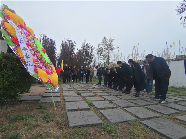 綠樹掩映,豫東特委紀(jì)念塔高高佇立,紀(jì)念碑前整齊地?cái)[放著鮮花。300余名來自老區(qū)的黨員干部、師生代表等在烈士胡曉初墓前靜立默哀、三鞠躬,傾訴哀思,深切緬懷革命先烈的不朽功績。