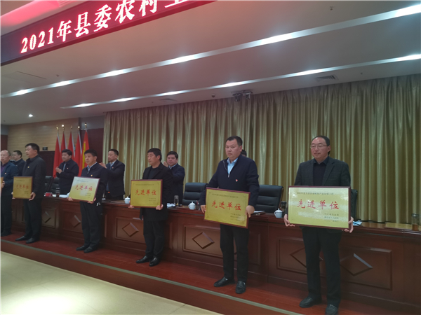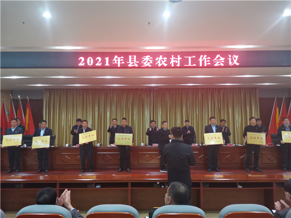郭俊濤就貫徹落實(shí)會議精神及下一步農(nóng)村工作進(jìn)行具體安排部署。縣委副書記許四軍宣讀了縣委、縣政府關(guān)于表揚(yáng)2020年度農(nóng)業(yè)農(nóng)村工作先進(jìn)單位、先進(jìn)個人的通報。會議還對受表彰的先進(jìn)單位代表進(jìn)行了頒獎。