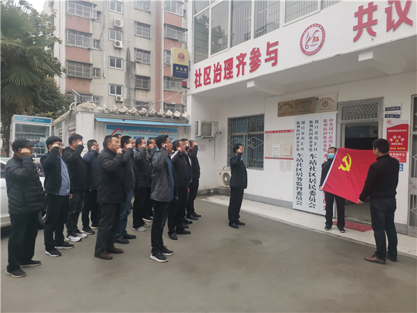 在永安小區(qū)活動現(xiàn)場,黨員干部、小區(qū)黨群議事會成員面對黨旗,重溫入黨誓詞,牢記共產(chǎn)黨人使命,不忘為民服務初心。