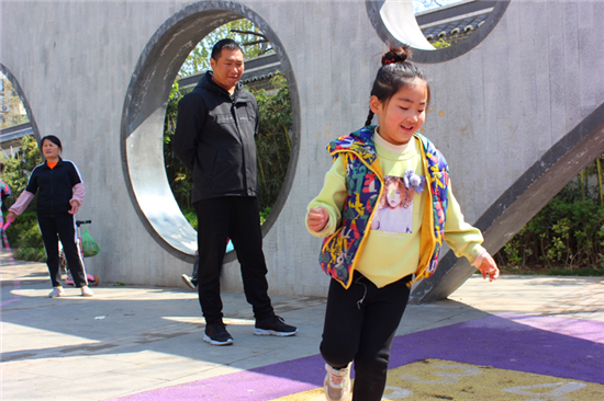 “之前小長假一般都是宅在家里看電視,去景區(qū)玩吧人太多,帶著孩子也不方便,現(xiàn)在家門前就是景,帶著孩子出來轉(zhuǎn)轉(zhuǎn),心情非常好?!闭诖髴c路旁的小游園里散步的張女士說。