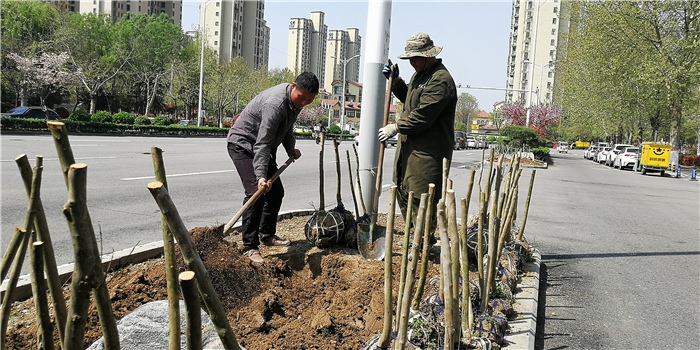 仲春時(shí)節(jié),我市積極打造街頭游園、口袋公園,增加市民休閑游樂場(chǎng)所。圖為園林工人正在施工。②7