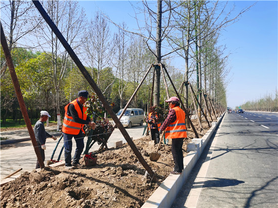 日前,氣溫回暖,春光明媚,正是種植樹木、養(yǎng)護(hù)苗木的好時節(jié)。連日來,在周口大道北段,園林工人利用現(xiàn)在好時節(jié),忙于栽植各種樹木,建設(shè)綠化工程。