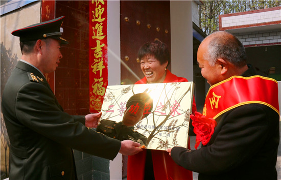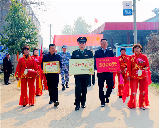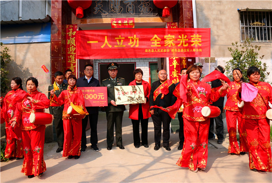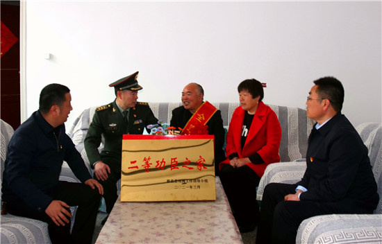 李峰說:“一張立功喜報(bào),不僅是軍人榮譽(yù)的象征、成長進(jìn)步的見證,也承載著軍人家屬的期盼與慰藉。功臣是實(shí)現(xiàn)強(qiáng)軍興軍目標(biāo)的尖兵,他們在部隊(duì)建功立業(yè),我們力所能及服務(wù)保障好他們的家人,積極在全社會(huì)營造起‘功臣受愛戴、軍人受尊崇、軍屬受尊敬’的氛圍?!睘榇?,鹿邑縣人武部積極構(gòu)建軍人軍屬榮譽(yù)體系,每逢重大節(jié)日,都要協(xié)調(diào)地方黨委、政府開展為現(xiàn)役軍人和軍屬送喜報(bào),掛功臣匾、光榮牌等活動(dòng),通過活動(dòng)激勵(lì)等形式,讓軍人軍屬享有更多的“專屬榮光”,努力營造“一人參軍,全家光榮;一人立功,全村光榮”的濃厚氛圍,更加堅(jiān)定了軍屬支持子女獻(xiàn)身國防的決心,進(jìn)一步激發(fā)了鹿邑籍官兵獻(xiàn)身軍營、報(bào)效祖國的積極性。②9